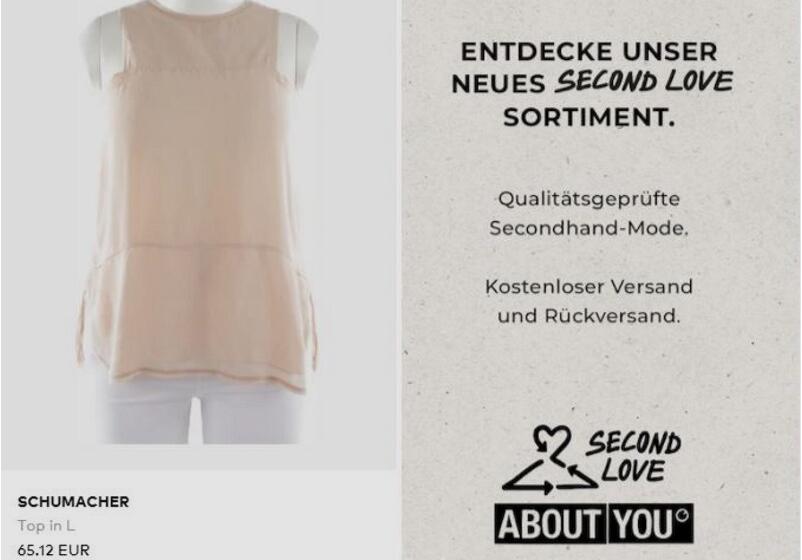 HAMBURGO - La plataforma online y rival de Zalando, About You, se está expandiendo al mercado de segunda mano ofreciendo alrededor de 30.000 prendas usadas en una nueva sección 'Second Love' en su sitio web.