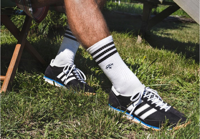Adidas continúa capitalizando las grandes cantidades de desechos plásticos recuperados de Parley, que se interceptan en zonas costeras de todo el mundo. La compañía dice: 'Al fusionar la mezcla de influencias de Noah con la herencia deportiva de Adidas, la colección es simultáneamente una celebración de la tecnología de carrera de alto rendimiento y la estética de archivo'.