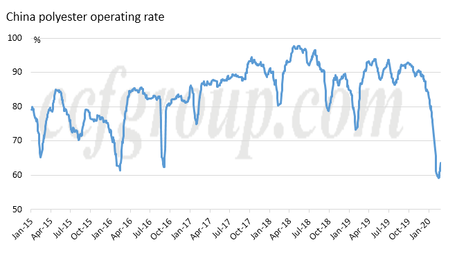A causa de la epidemia, el consumo y la producción en China se desaceleraron claramente. A finales de febrero, el funcionamiento del sector textil downstream seguía siendo extremadamente bajo, ligeramente superior al 20%, de ahí el escaso apetito por el poliéster. Mientras tanto, la tasa de operación del poliéster cayó después de las vacaciones del Festival de Primavera, debido a la escasa demanda, el aumento del inventario y la falta de trabajadores, cayendo al mínimo histórico de varios años del 59%.