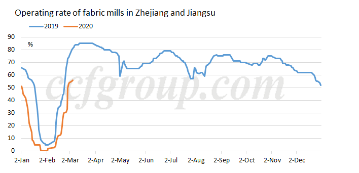 Las existencias de productos terminados en las empresas de poliéster se devaluaron después de que las plantas transformadoras retrasaran la reanudación, y el inventario de PFY alcanzó un nivel histórico, principalmente en las principales empresas de poliéster. Las empresas de poliéster aumentaron el recorte de producción presionadas por la presión devaluatoria de las acciones. La tasa promedio de polimerización de poliéster se estimó en 78% en enero, y se anticipó que en febrero sería 85% de acuerdo con la situación creada antes del Festival de Primavera, que finalmente se revisó a menos de 62%, y que en marzo se espera que sea 78-80% ahora, con una estimación previa a las vacaciones del 89%. La producción de poliéster cayó 1.060 kt en febrero, y la disminución en marzo y el primer trimestre fue de 500 kt y 1.560 kt respectivamente. La tasa de crecimiento de la producción de poliéster se ajusta a -6,9% en el primer trimestre de 2020 desde la estimación previa a las vacaciones de 6,6%, y es probable que la de todo 2020 se reevalúe más adelante, que se esperaba que estuviera cerca del 6% antes de la Luna. Vacaciones de año nuevo.