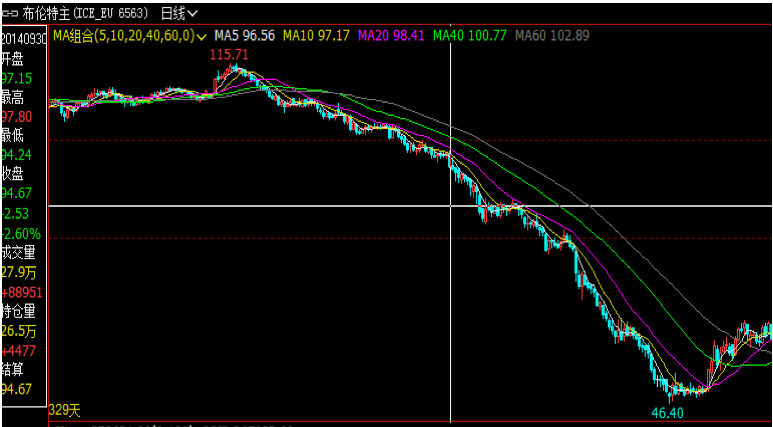 Futuros diarios del petróleo crudo Brent en 2014