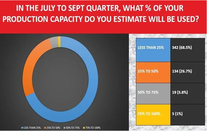Para el trimestre julio-septiembre, hasta el 68 por ciento de los encuestados prevén utilizar menos del 25 por ciento de su capacidad de producción en los próximos tres meses, dijo CMAI en los resultados de su encuesta.