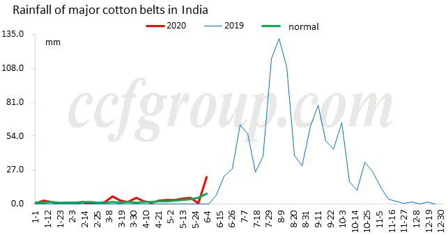 En resumen, Pakistán ha completado ya más del 80% de su siembra de algodón y es posible que en julio lleguen las lluvias monzónicas. Las langostas pueden tener un mayor impacto en el algodón paquistaní. En la India, las principales regiones productoras de algodón aún no han comenzado la siembra masiva, y las lluvias monzónicas llegan antes este año y duran mucho, lo que inhibirá la migración y reproducción de las langostas hasta cierto punto y tendrá menos impacto en el algodón. Además, tanto India como Pakistán llevan a cabo operaciones de control activo. En resumen, el impacto de las langostas sobre la producción de algodón en India y Pakistán puede ser limitado, y la situación de exceso de oferta puede continuar, dejando poco margen para que suban los precios del algodón.