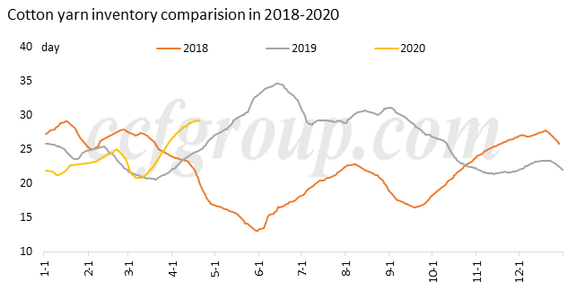 Como es tradicional la temporada alta de la industria textil en el primer semestre del año, el mercado de hilados de algodón se mostró muy flojo en este abril afectado por la pandemia de coronavirus. Aun así, el mercado no fue tan bajista como se esperaba en marzo. Se escuchó que las plantas transformadoras recibieron una gran cantidad de pedidos de máscaras de gasa de algodón de Japón y la producción podría mantenerse hasta finales de abril, lo que promovió la adquisición de hilo de algodón como el cardado. 40S. Por otro lado, los pedidos del mercado local de China también mejoraron, pero principalmente con tarjetas 32-40S. Sin embargo, el hilo de algodón abierto, el hilo de algodón de alta densidad y el hilo de algodón peinado permanecieron sin brillo y el inventario siguió aumentando. En general, el mercado de hilados de algodón no se ha deteriorado más en abril. El inventario general todavía está en tendencia alcista, pero el aumento se desacelera en comparación con el de mediados o finales de marzo.