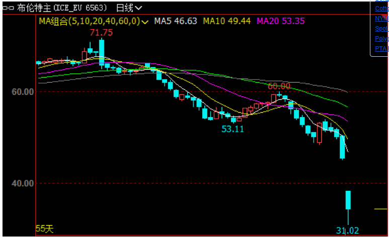 El petróleo crudo se desplomó más de un 9% tras el fracaso del acuerdo de la OPEP+ el viernes. Arabia Saudita anunció el sábado por la noche que recortará su precio de venta oficial (OSP) para abril para todos sus grados de crudo a todos los destinos, lo que se consideró como el comienzo de una guerra de precios. Los futuros del crudo Brent cayeron más del 29% a 31,02 dólares el barril el lunes por la mañana cuando Arabia Saudita prometió aumentar la producción.