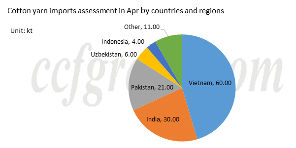 Según datos de envíos extranjeros en marzo y teniendo en cuenta el incumplimiento de contratos, las llegadas de hilo de algodón vietnamita se estiman en 60 kt; el del hilo de algodón indio, de 30 nudos; Hilo de algodón paquistaní de 21 kt, hilo de algodón uzbeko de 6 kt; El hilo de algodón de Indonesia a 4kt y el de otras regiones y países a 11kt. El incumplimiento de contratos fue poco visto en la historia, por lo que el resultado de la investigación puede mostrar grandes diferencias. El incumplimiento de los contratos puede ser más allá de lo esperado.