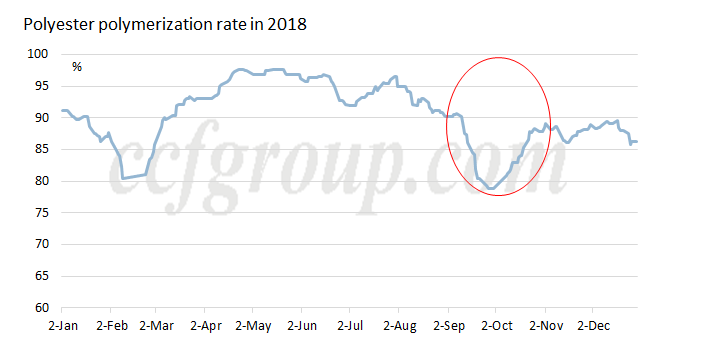Hay muchos análisis sobre las razones de la elasticidad de la demanda de poliéster, y los factores que influyen realmente son varios, incluidas la exportación y la sustitución, etc. Entre ellos, el ritmo del mercado puede ser un factor crucial. La producción de poliéster creció a un ritmo elevado en el primer semestre de 2018, pero la mentalidad de los actores del mercado se vio gravemente afectada por el rendimiento volátil y la tasa de polimerización del poliéster obviamente disminuyó, especialmente en septiembre-octubre de 2018.