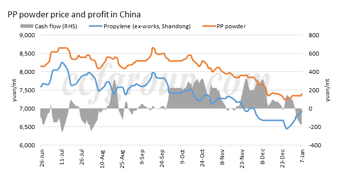 En la primera semana de 2020, el precio del polvo de PP no había cambiado significativamente, pero el entorno macroeconómico se había deteriorado evidentemente en comparación con el período anterior. El 7 de enero, las principales ofertas de energía PP estaban a 7.400-7.500 yuanes/tm en la provincia de Shandong, y a 7.450-7.550 yuanes/tm en Jiangsu y Zhejiang. Aunque la diferencia de precios entre las dos áreas era pequeña, el entorno general en Jiangsu y Zhejiang era mucho mejor.