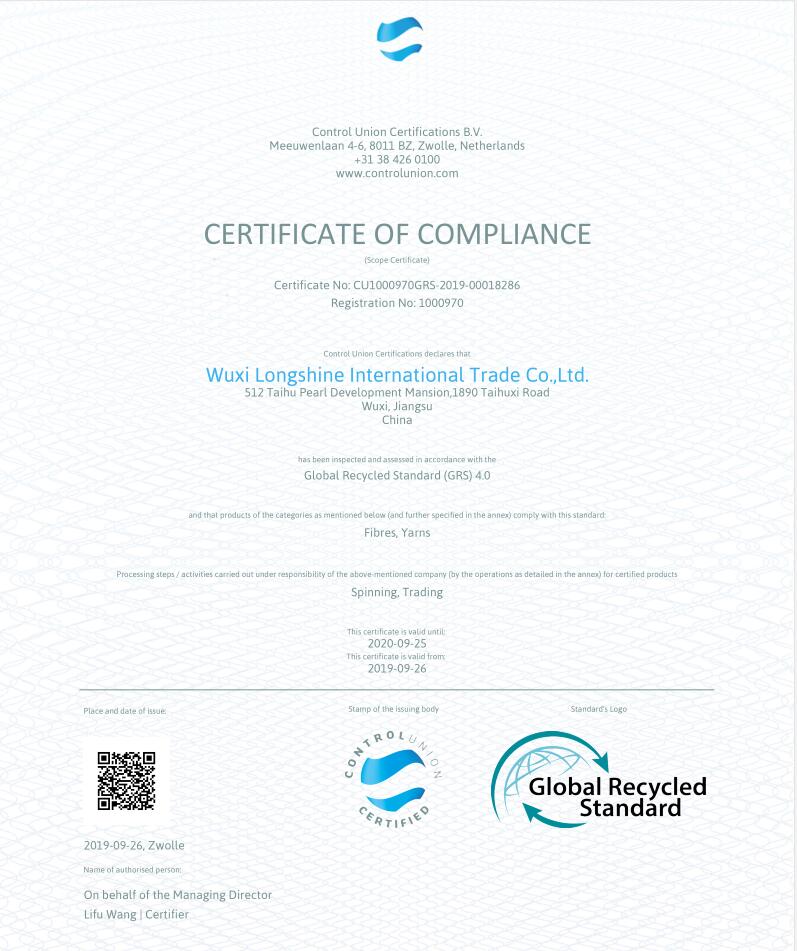 Se terminaron el certificado GRS y el certificado Oeko-Tex; si es necesario, no dude en enviarnos su consulta.