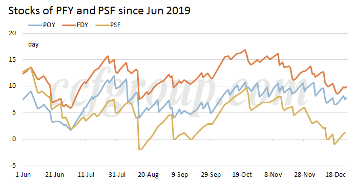 El mercado de materias primas subió con fuerza en diciembre, añadiendo impulso al mercado del poliéster. La base MEG al contado y de futuros aumentó a 1.000 yuanes/tm y disminuyó gradualmente en los últimos días. El precio del PTA también se fortaleció gracias a los elevados costes. Algunos comerciantes se vieron afectados por esta ronda de gran volatilidad y el flujo de caja se redujo en algunas plantas.